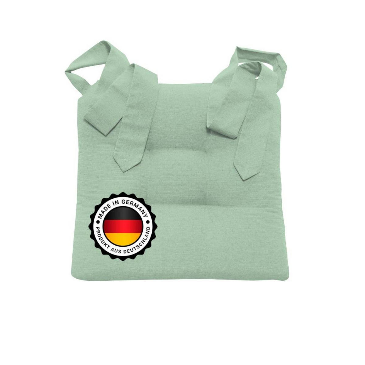 Eine farbenreiche Auswahl an Stuhlkissen. Der Stoff aus Baumwoll-Mischgewebe besitzt eine feste Eigenschaft zudem haben die Stuhlkissen ein gutes Sitzpolster von ca. 7cm, somit behalten sie ihre Form. Der Bezugsstoff zeigt eine leichte Rillenstruktur auf. Die Stuhlkissen haben jeweils links und rechts eine Schlaufe deren Länge ca 90 cm lang ist. Dadurch lassen die Kissen sich gut um den Stuhl schnüren.