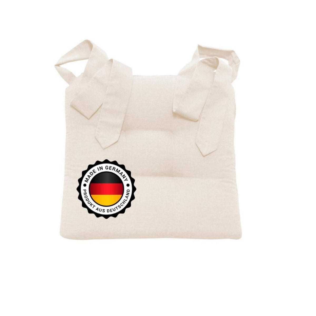 Eine farbenreiche Auswahl an Stuhlkissen. Der Stoff aus Baumwoll-Mischgewebe besitzt eine feste Eigenschaft zudem haben die Stuhlkissen ein gutes Sitzpolster von ca. 7cm, somit behalten sie ihre Form. Der Bezugsstoff zeigt eine leichte Rillenstruktur auf. Die Stuhlkissen haben jeweils links und rechts eine Schlaufe deren Länge ca 90 cm lang ist. Dadurch lassen die Kissen sich gut um den Stuhl schnüren.