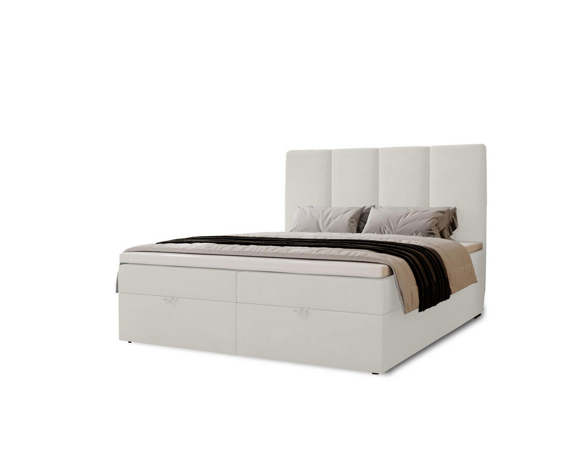 BOXBETT Malmo mit 2 Bettkästen, 160x200, Weiß, Velourstoff, Doppelbett mit Bonell-Matratze inkl. Topper