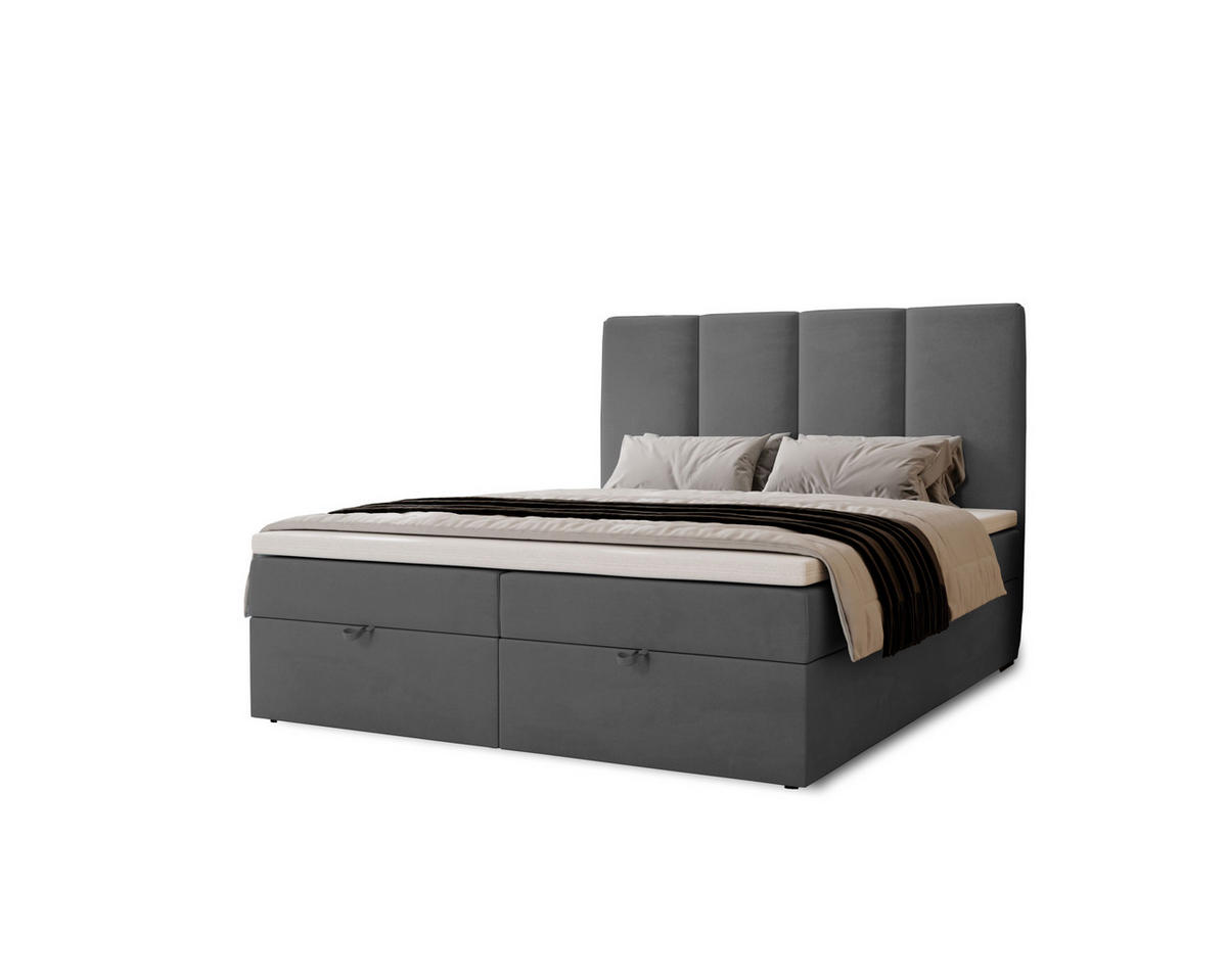 BOXBETT Malmo mit 2 Bettkästen, 180x200, Dunkelgrau, Velourstoff, Doppelbett mit Bonell-Matratze inkl. Topper - Dunkelgrau, Holz/Kunststoff (180/200cm)