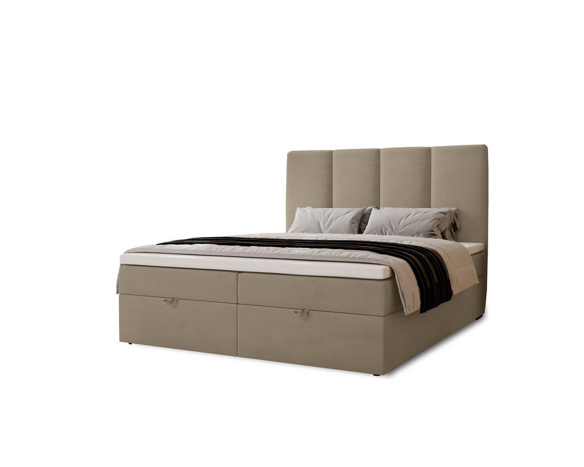BOXBETT Malmo mit 2 Bettkästen, 200x200, Hellbraun, Velourstoff, Doppelbett mit Bonell-Matratze inkl. Topper