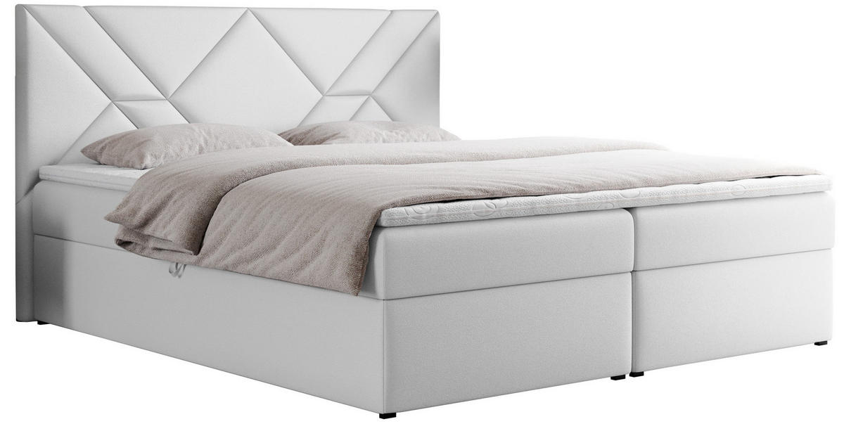BOXBETT NEOMI 120/200 - Weiß Kunstleder - H3 - Topper T25