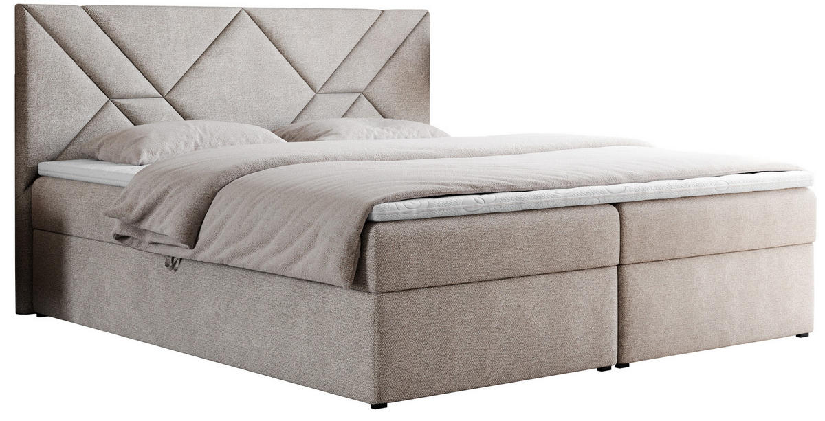 BOXBETT 180/200 cm, in Beige, gepolstertes Kopfteil, Bettkasten, Topper, Matratzen, H3 + H3 = fest