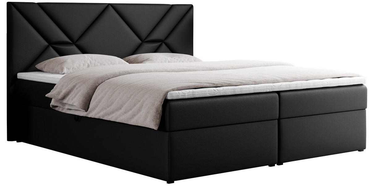 BOXBETT NEOMI 200/200 - Schwarz Kunstleder - H3 - Topper T25