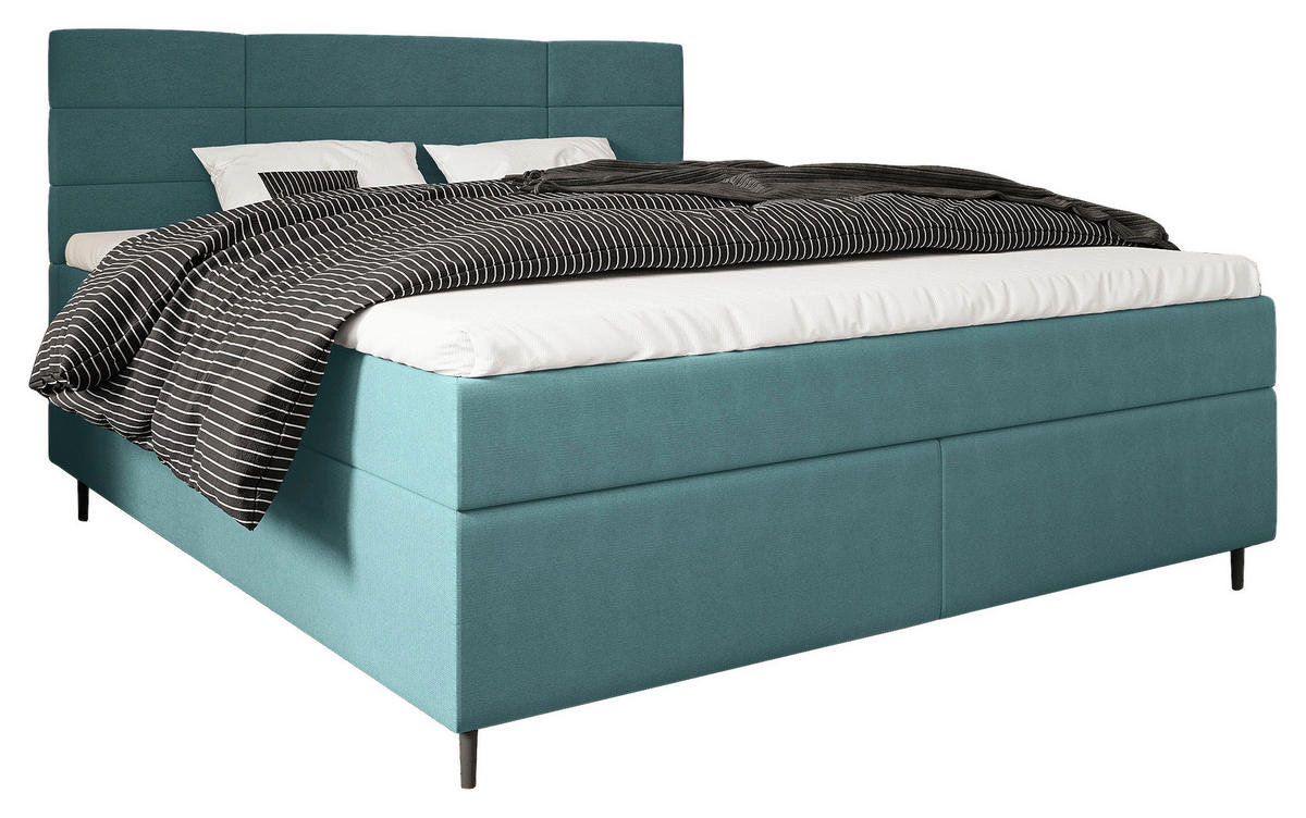 Bettkasten ergänzt praktischen Stauraum für alle Accessoires, die griffbereit untergebracht werden wollen. Stellen Sie mit diesem Boxbett (ca. 180 x 200 cm) in Petrol inklusive Bettkasten, Matratze, Lattenrost, Topper und gepolstertem Kopfteil die Weichen auf Well-Being!