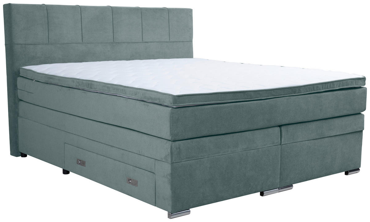 BOXSPRINGBETT 180/200 cm, in Eichefarben, Dunkelgrau, Matratze, gepolstertes Kopfteil, Bettkasten, Topper, H3 + H3 = fest