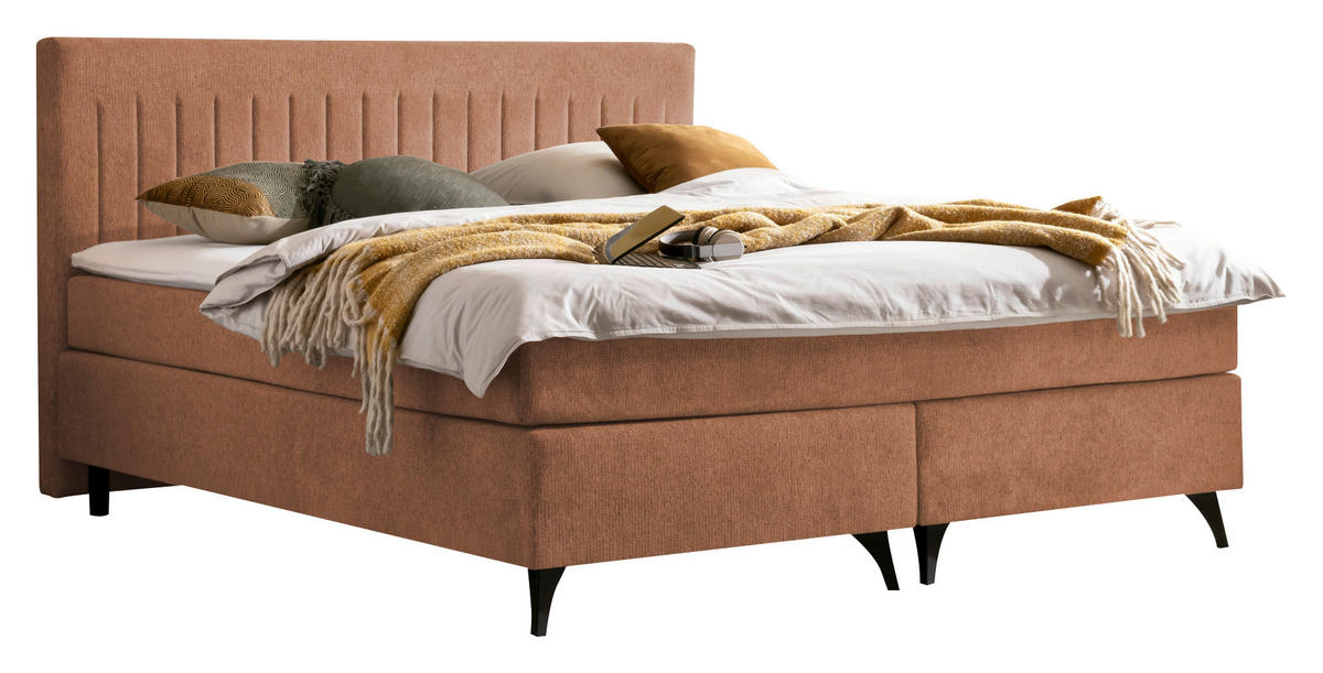 Schwarz Teil einer stringenten Designlogik. Ihr neues Boxspringbett (ca. 180 x 200 cm) in Rostrot mit Matratze, Topper und gepolstertem Kopfteil verführt dazu, behaglich die verdiente Nachtruhe zu genießen!
