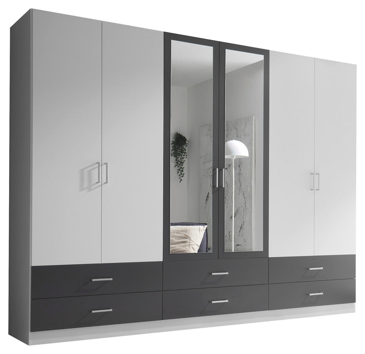 DREHTÜRENSCHRANK 272/211/55 cm, in Graphitfarben, Weiß, 6-türig Graphitfarben, WeißHolzwerkstoffBreite/Höhe/Tiefe: 272/211/55 cm499,00 €