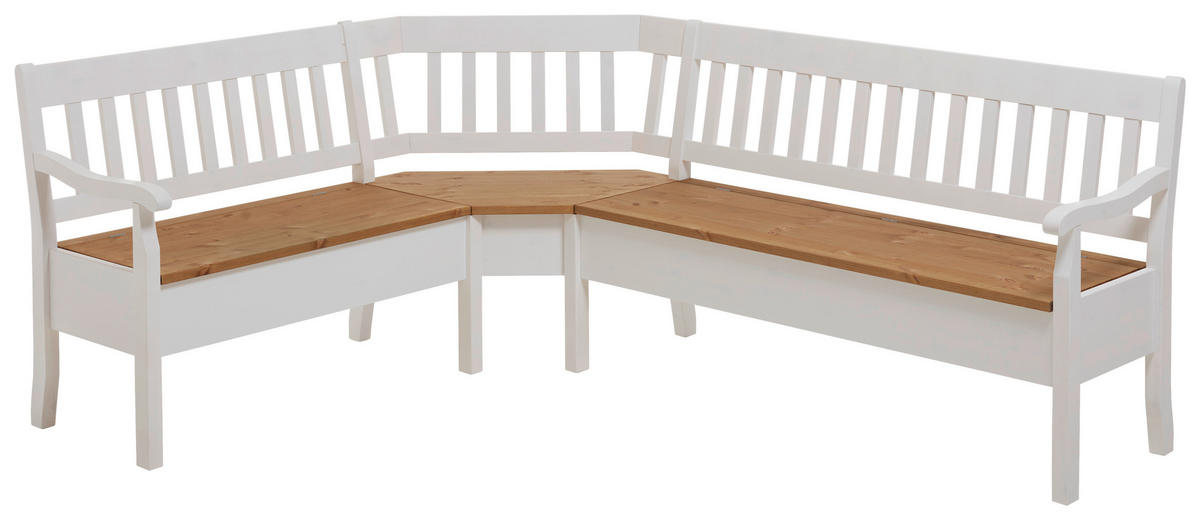 ECKBANK 170/213 cm Weiß, Laugenfarbig Kiefer massiv   - Laugenfarbig/Weiß, ROMANTIK / LANDHAUS, Holz (170/213cm) - Boxxx