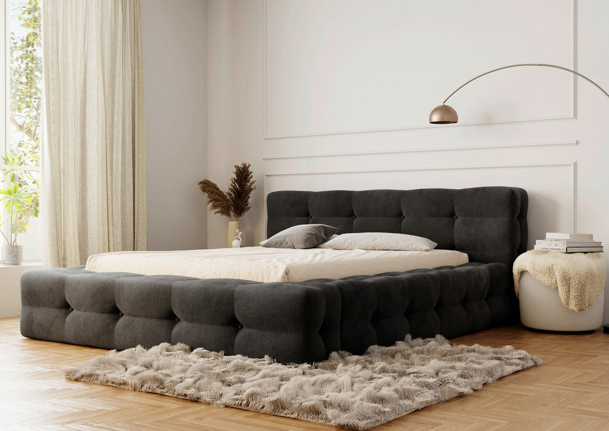 Polsterbett (140 x 200 cm) in Anthrazit mit Bettkasten: Schlafzimmer-Highlight