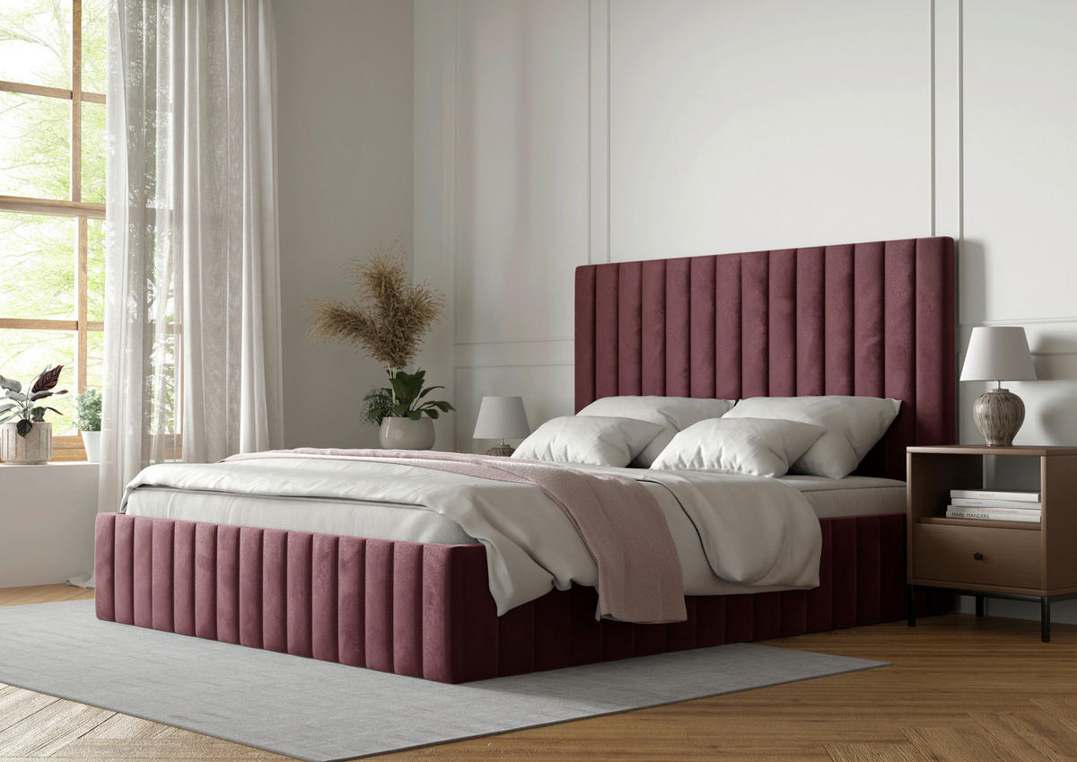 Cozy Dreams: Polsterbett (140 x 200 cm) in Bordeauxrot mit Bettkasten