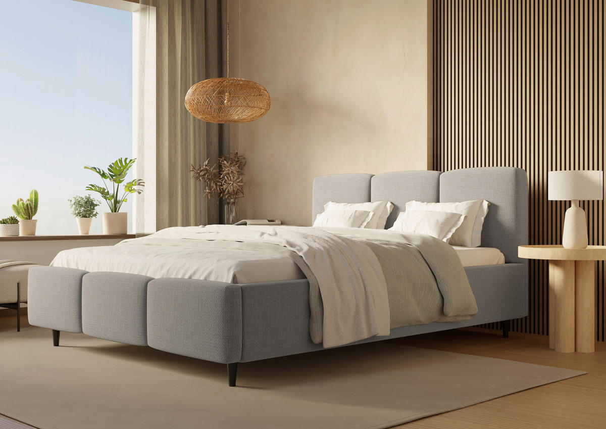 Schlafen mit Klasse: Polsterbett (140 x 200 cm) in Hellgrau mit Bettkasten