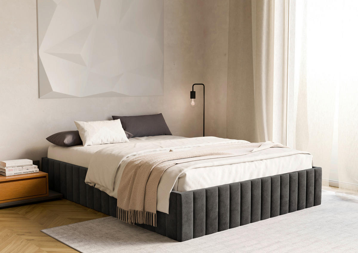 Polsterbett (160 x 200 cm) in Schwarz mit Bettkasten – dreamy Key-Piece
