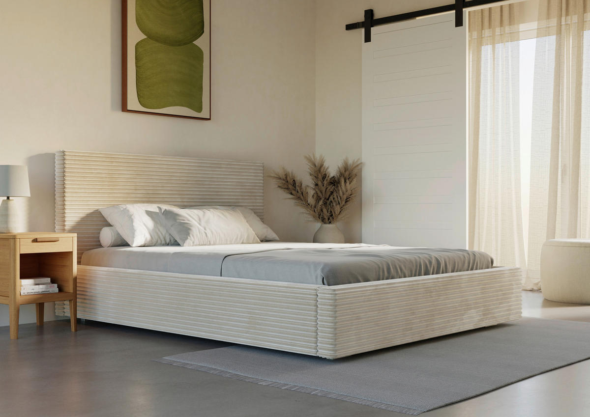 Beige inklusive Bettkasten sorgt für eine erfrischende Nachtruhe.