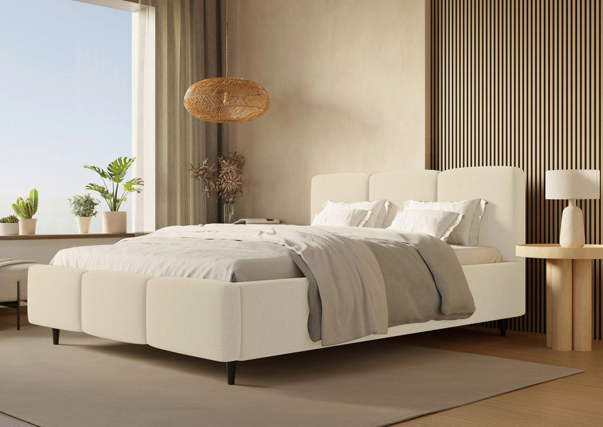 Polsterbett (180 x 200 cm) in Creme mit Bettkasten – style up your Dreamland