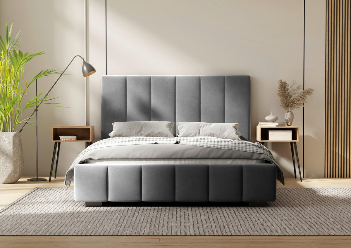 Polsterbett 200 x 200 mit Velours-Bezug Anthrazit mit Lattenrost und Bettkasten