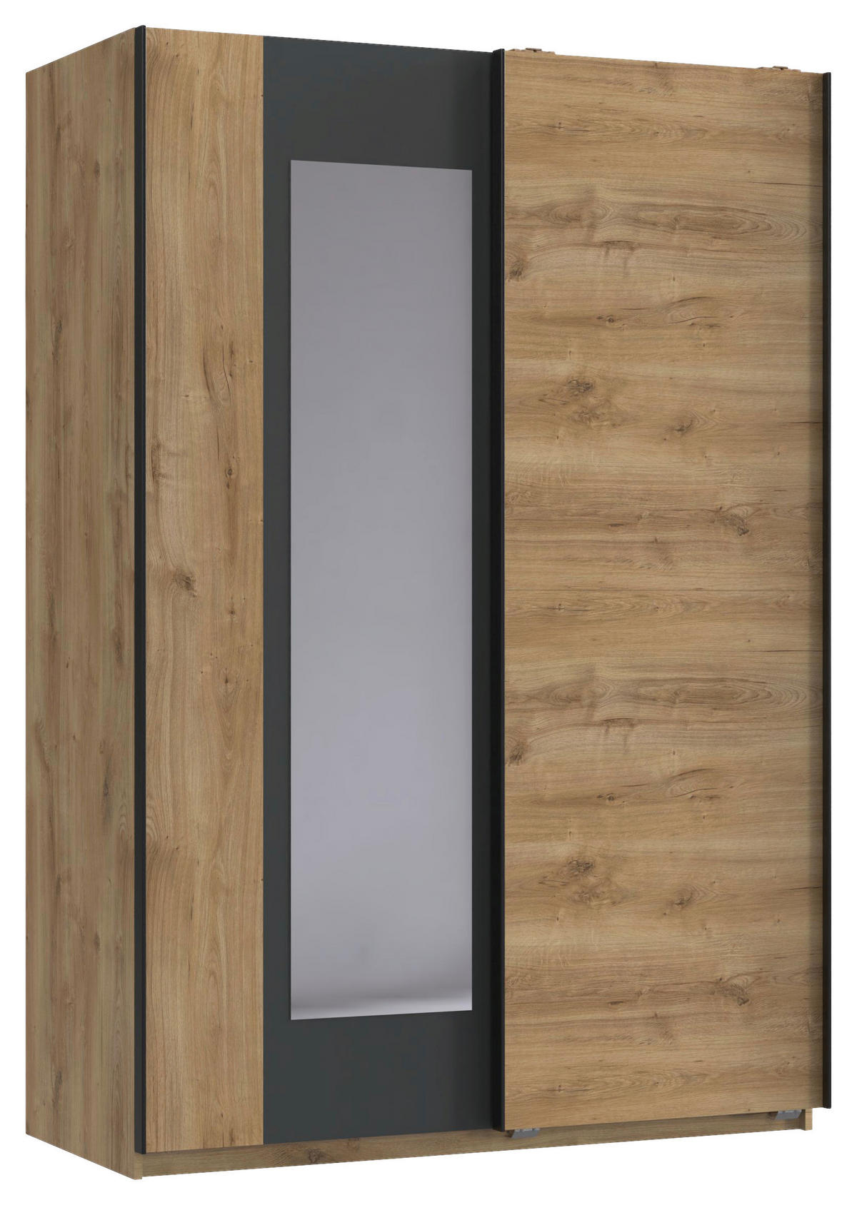 Boxxx SCHWEBETÜRENSCHRANK 135/198/65 cm 2-türig Graphitfarben, Plankeneiche
