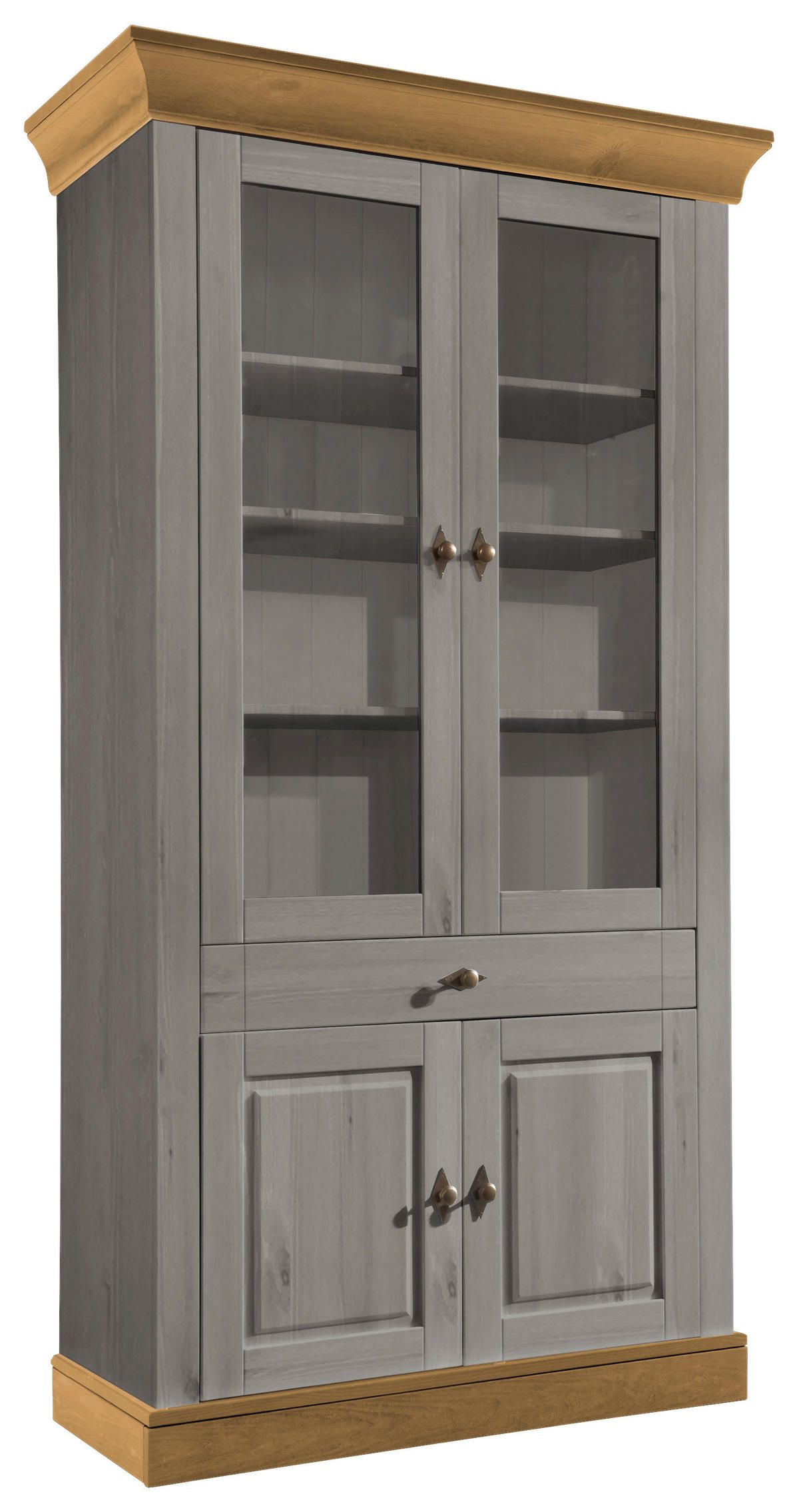 VITRINE  in massiv Kiefer Laugenfarbig, Grau  - Laugenfarbig/Grau, ROMANTIK / LANDHAUS, Glas/Holz (108/202/45cm) - Boxxx