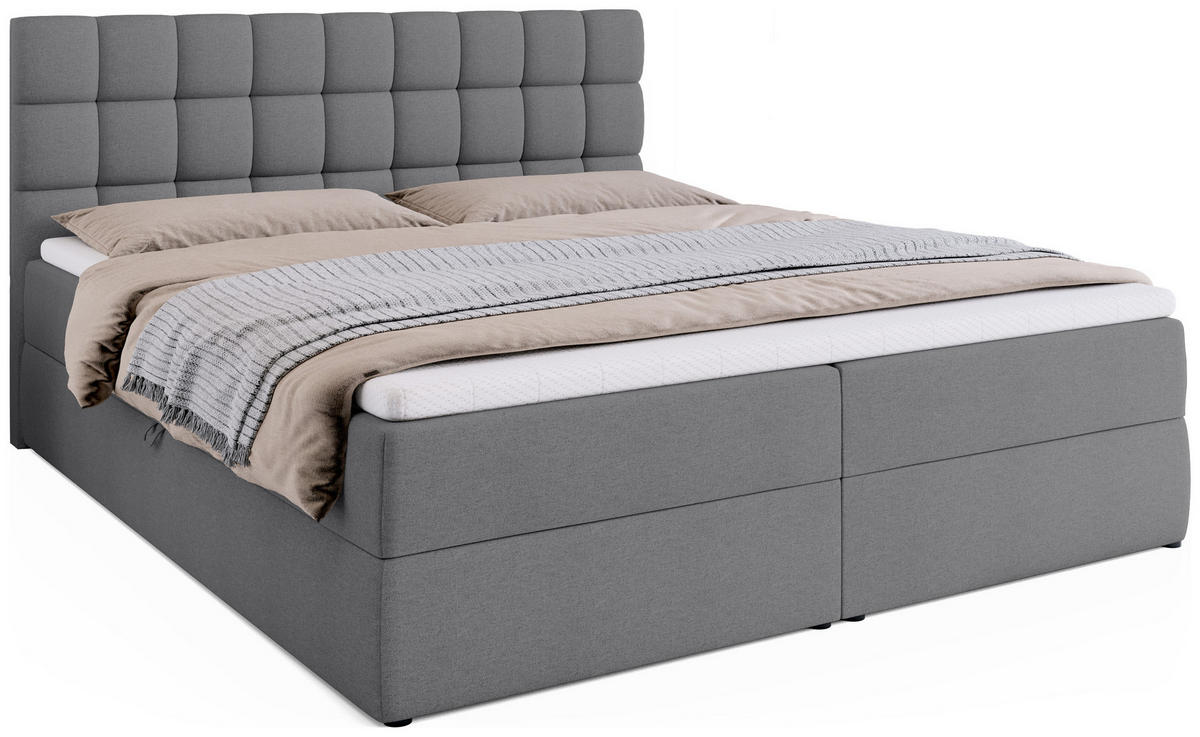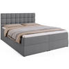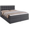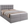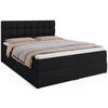 Das Boxspringbett DAKOTA vereint modernen Stil mit außergewöhnlichem Schlafkomfort. Es ist mit einer mittelfesten Matratze ausgestattet, die aus langlebigen Bonellfedern (2,4 mm) und T-30-Schaumstoff besteht – ideal für eine gesunde Wirbelsäulenunterstützung. Unter den Federn sorgt ein spezieller Filz für Geräuschdämmung beim Bewegen.Das Bett verfügt über zwei tiefe Bettkästen mit einem Federmechanismus, der das Anheben der Liegefläche erleichtert. Der Zugang erfolgt mühelos über seitlich angebrachte Schlaufen – ganz ohne Kraftaufwand. Die Innenseiten der Bettkästen bestehen aus weiß laminierten Platten, die pflegeleicht und langlebig sind.Das stabile Gestell aus Massivholz und Spanplatte garantiert Langlebigkeit. Das gepolsterte Kopfteil mit dekorativen Nähten und Steppungen verleiht dem Bett einen eleganten Charakter. Schwarze Kunststofffüße mit Schutzgleitern bewahren den Boden vor Kratzern. Jedes Bett wird vor dem Verpacken sorgfältig geprüft, um höchste Qualität sicherzustellen.