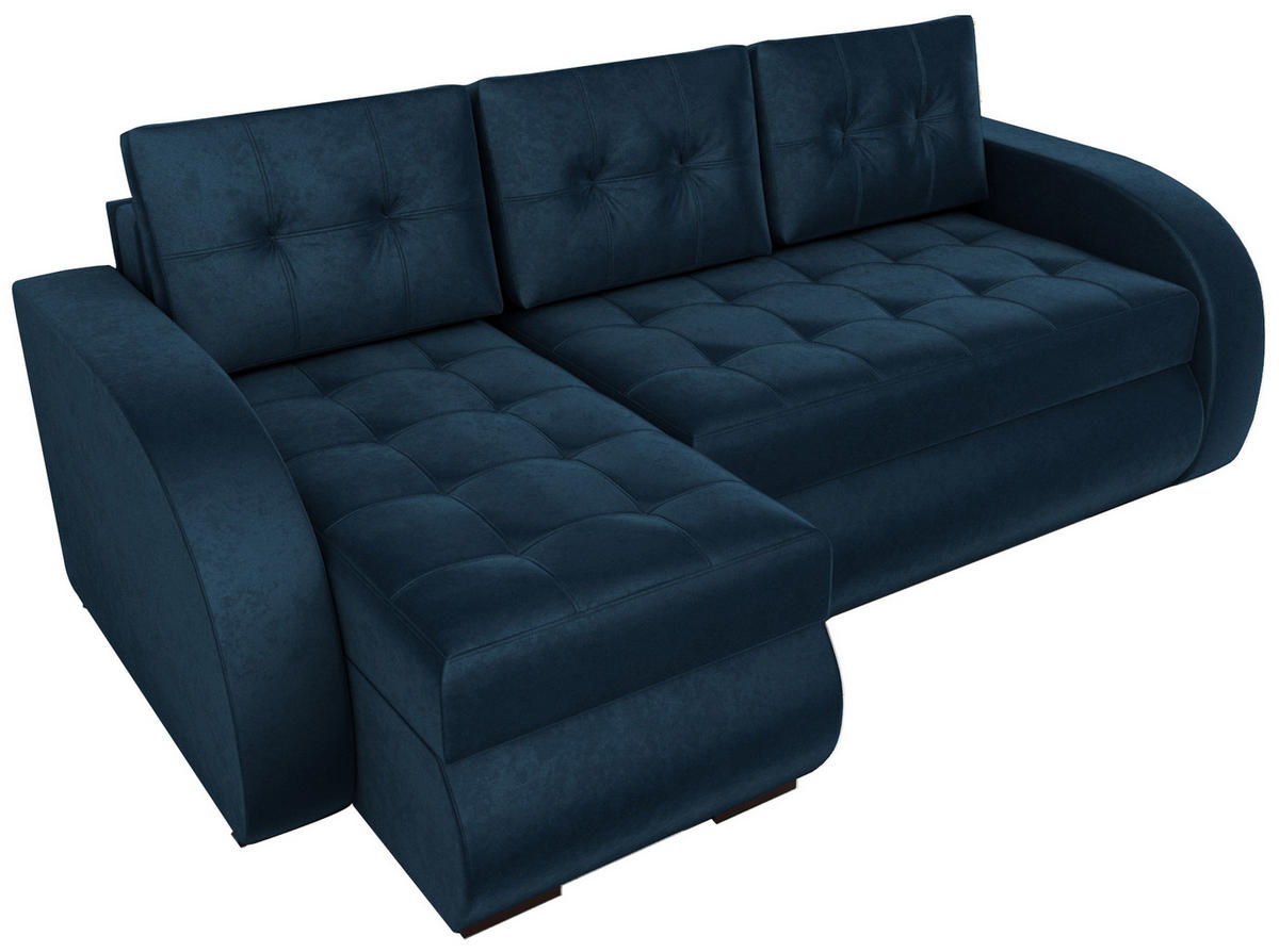 Bromarkt ECKSOFA Bergen mit Schlaffunktion Blau Samtstoff