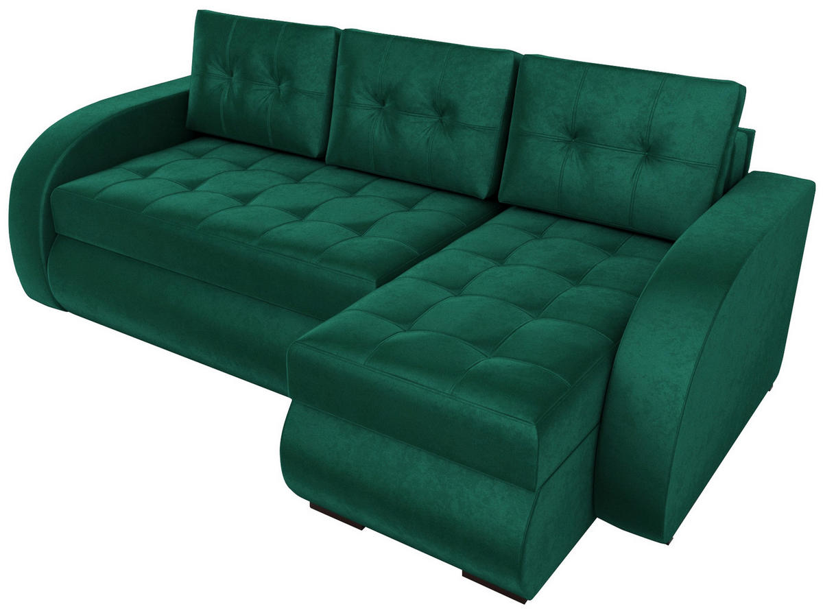 Bromarkt ECKSOFA Bergen mit Schlaffunktion Grün Samtstoff