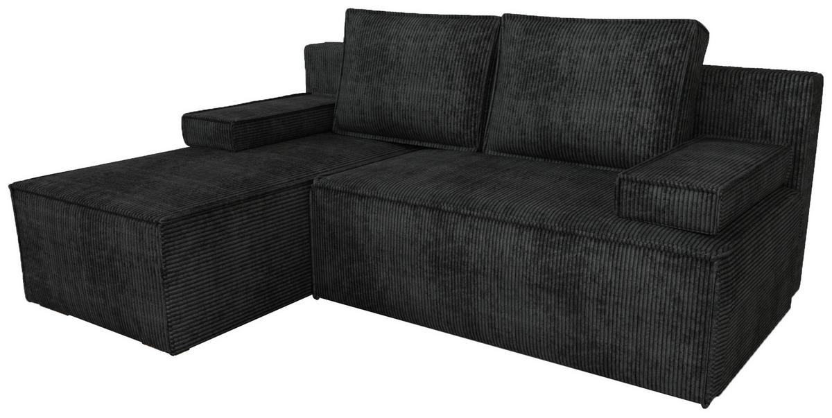Wenn Sie ein Möbelstück suchen, das modernes Design mit hoher Funktionalität verbindet, wird das Ecksofa CASPAR all Ihre Erwartungen erfüllen. Mit einer Schlaffunktion und einer Liegefläche von 138x200 cm sowie einem DL-Automatikmechanismus bietet es eine bequeme Möglichkeit zum täglichen Entspannen und komfortablen Übernachten für Gäste. Sein minimalistisches Design passt perfekt in moderne Innenräume und verleiht ihnen Eleganz und Klasse.Bettkasten – praktische AufbewahrungslösungUnter der Sitzfläche des Sofas befindet sich ein geräumiger Bettkasten, der zur besseren Raumnutzung beiträgt. Diese praktische Funktion des Bettkastens sorgt dafür, dass Ihr Wohnzimmer nicht nur stilvoll, sondern auch ordentlich bleibt.Komfortable KissenZwei Rückenkissen bieten eine angenehme Stütze für den Rücken und ermöglichen maximale Entspannung im Alltag. Zusätzlich lassen sich zwei kleine Nackenkissen flexibel anpassen, um den Komfort zu erhöhen und die idealen Bedingungen für ein Nickerchen oder die entspannende Auszeit zu schaffen. So bietet das Sofa CASPAR maximalen Komfort, unabhängig davon, wie Sie es nutzen.Eleganter Cordstoff – Weichheit und StilDas Sofa ist mit Cordstoff bezogen, der sich durch seine Weichheit und charakteristische gerippte Struktur auszeichnet. Cord verleiht dem Sofa nicht nur Eleganz, sondern ist auch langlebig und widerstandsfähig gegen täglichen Gebrauch. Dadurch sieht das Sofa nicht nur großartig aus, sondern bietet auch langanhaltenden Komfort. Die Cordpolsterung bringt eine gemütliche Atmosphäre in den Raum und unterstreicht den modernen Charakter des Möbelstücks.Bonell-Federn – ideal für häufiges Schlafen und dauerhafte FormbeständigkeitDie Bonell-Federn des Sofas ermöglichen ein häufigeres Schlafen und verhindern dauerhafte Verformungen durch regelmäßigen Gebrauch. Ihre charakteristische Sanduhrform sorgt dafür, dass die Festigkeit des Sofas mit zunehmendem Druck steigt, was zusätzlichen Komfort und Stabilität bietet.Detaillierte Abmessungen des Sofas: