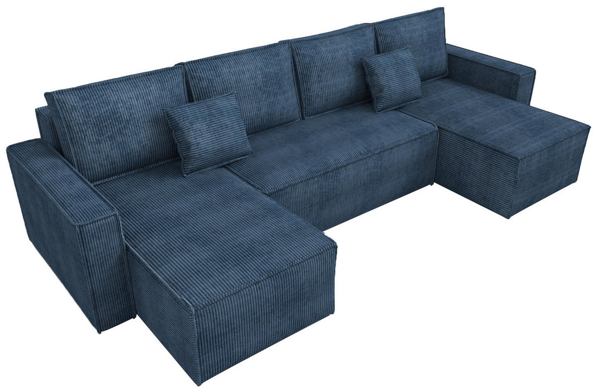 Das Cord-Ecksofa DEXTER U kombiniert moderne Ästhetik mit praktischen Funktionen und ist ideal für das Wohnzimmer. Die Schlaffunktion (138x268 cm) und der DL-Mechanismus ermöglichen eine schnelle Umwandlung in ein geräumiges Gästebett. Sein modernes Design macht es zum stilvollen Mittelpunkt jedes Interieurs.BettkastenEin geräumiger Bettkasten unter der Sitzfläche bietet Stauraum für Bettdecken und Kissen und sorgt für ein aufgeräumtes Wohnzimmer.Bequeme KissenVier große Rückenkissen und zwei kleinere Kissen bieten optimalen Komfort und lassen sich flexibel als Kopfstützen nutzen, ideal für die ganze Familie.CordstoffDer hochwertige Cordstoff mit seiner stilvollen Rippstruktur bringt Eleganz und Gemütlichkeit. Weich und langlebig, ist er ideal für den täglichen Gebrauch und behält seinen schönen Look.Bonell-Federn – ideal für häufiges Schlafen und dauerhafte FormbeständigkeitDie Bonell-Federn des Sofas ermöglichen ein häufigeres Schlafen und verhindern dauerhafte Verformungen durch regelmäßigen Gebrauch. Ihre charakteristische Sanduhrform sorgt dafür, dass die Festigkeit des Sofas mit zunehmendem Druck steigt, was zusätzlichen Komfort und Stabilität bietet.Detaillierte Abmessungen des Sofas: