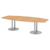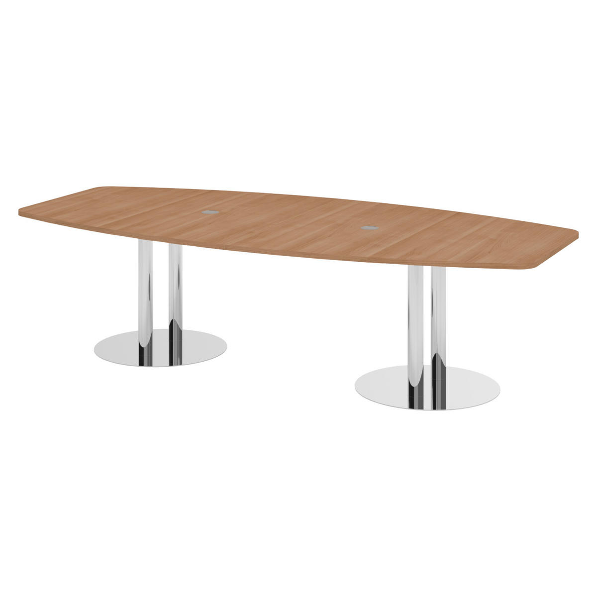 Der bümö XXL Konferenztisch mit Holzuntergestell ist hervorragend für Besprechungszimmer oder Kundenräume geeignet. Der große Konferenztisch bietet insgesamt 10 Personen Platz. Auch Chefbüros, in denen häufiger Meetings abgehalten werden, verleiht das hochwertig verarbeitete Element einen professionellen Ausdruck. Die Grundform des Besprechungstisches ist an einem modernen Oval orientiert. Dank durchdachter Konstruktion wird er schnell montiert und bietet im Anschluss genügend Platz für kurze und lange Besprechungen. Durch die besonders schöne, 2 mm abgerundete Duokante ist er zudem ein echter Blickfang. In Verbindung mit der bekannten Premium-Qualität von bümö ist der große Besprechungstisch ein absolutes Top-Produkt für die Ewigkeit.
