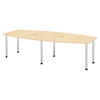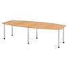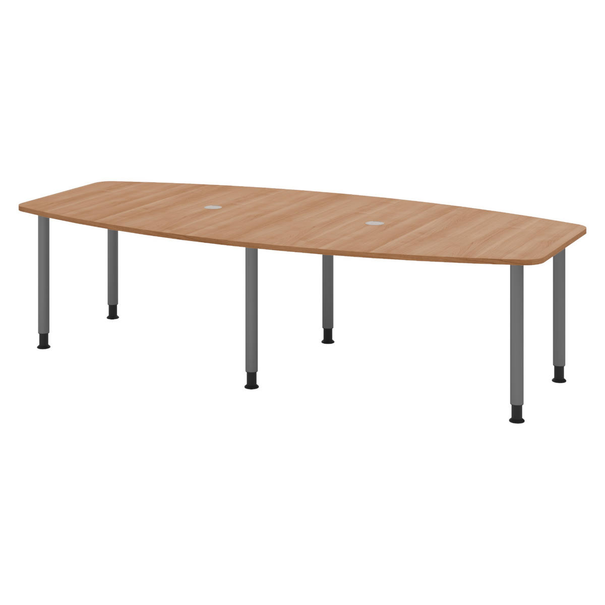 Der bümö Konferenztisch mittel mit feinjustierbaren Tischfüßen ist hervorragend für Besprechungszimmer oder Kundenräume geeignet. Der kleine Konferenztisch bietet insgesamt 10 Personen Platz. Auch Chefbüros, in denen häufiger Meetings abgehalten werden, verleiht das hochwertig verarbeitete Element einen professionellen Ausdruck. Die Grundform des Besprechungstisches ist an einem modernen Oval orientiert. Dank durchdachter Konstruktion wird er schnell montiert und bietet im Anschluss genügend Platz für kurze und lange Besprechungen. Durch die besonders schöne, 2 mm starke, abgerundete Duokante ist er zudem ein echter Blickfang. In Verbindung mit der bekannten Premium-Qualität von bümö ist der kleine Besprechungstisch ein absolutes Top-Produkt für die Ewigkeit.