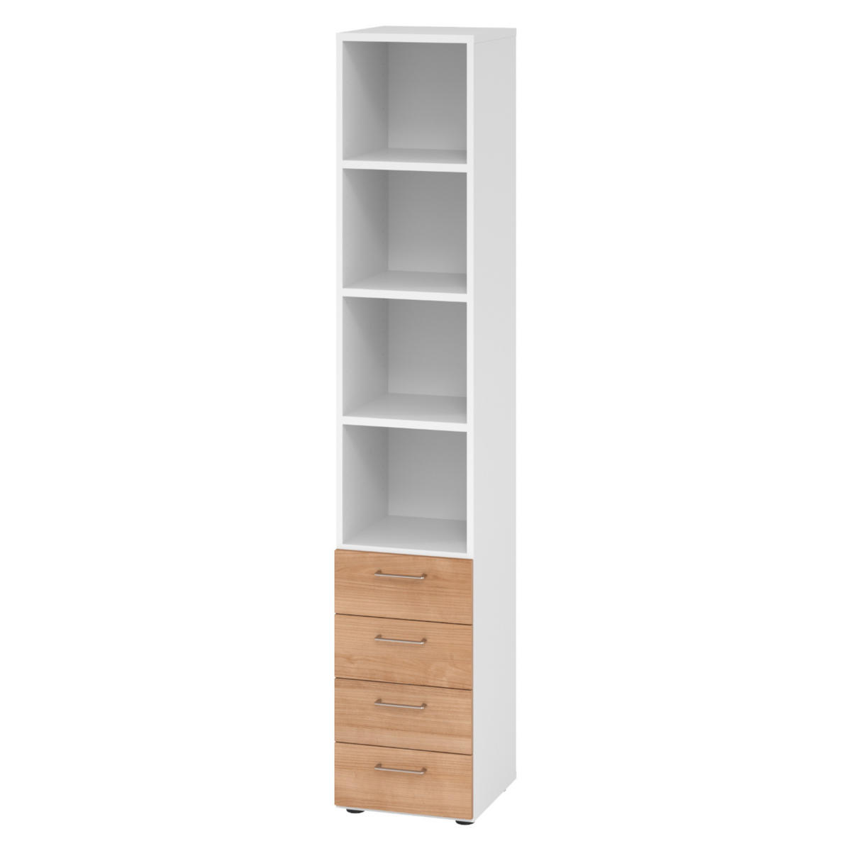 - 4 Schubladen + 3 Einlegeböden für 4 Ordnerhöhen