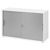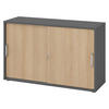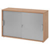 bümö SCHIEBETÜRENSCHRANK - 2 Ordnerhöhen 40/120/74,8 cm in Buchefarben/Silberfarben Chromgriff (Metall)