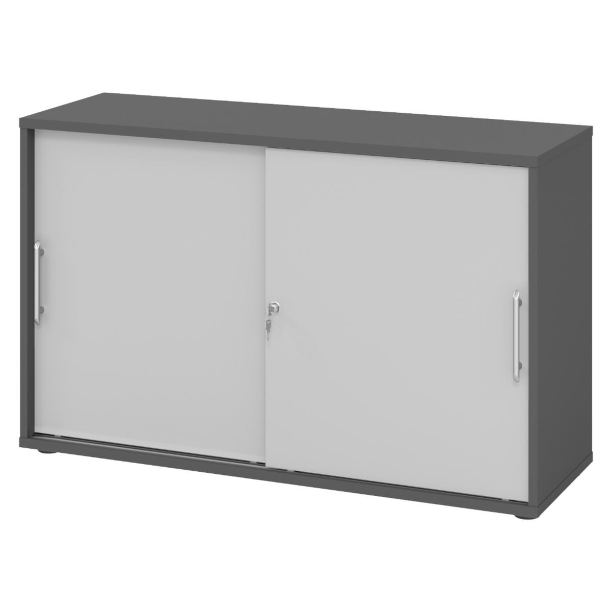 bümö SCHIEBETÜRENSCHRANK - 2 Ordnerhöhen 40/120/74,8 cm in Graphitfarben/Grau Relinggriff (Kunststoff)
