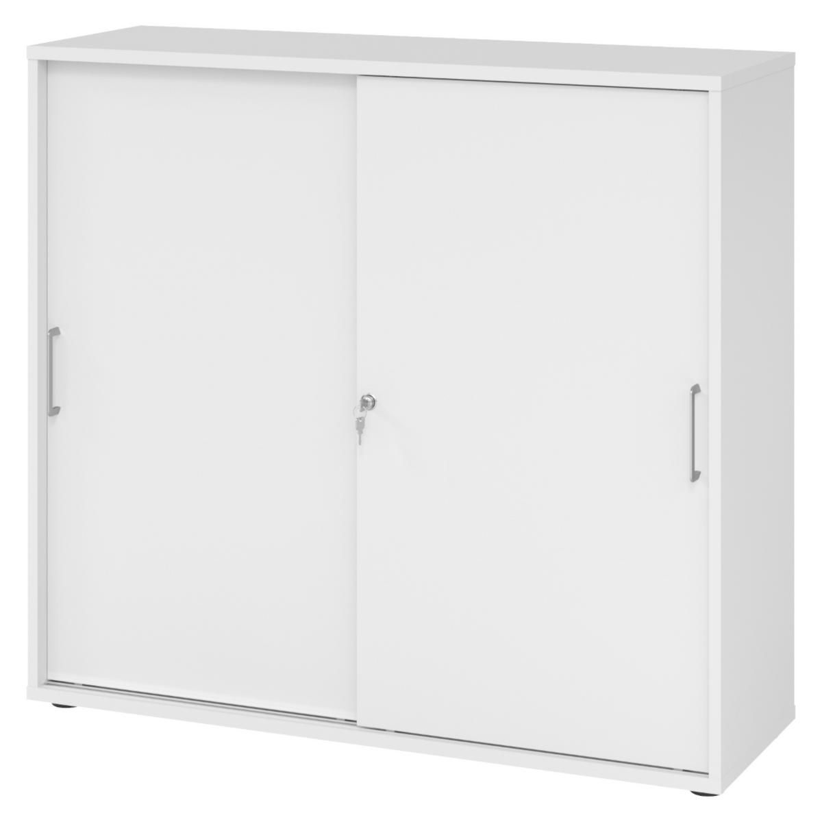 bümö SCHIEBETÜRENSCHRANK - 3 Ordnerhöhen 40/120/110 cm in Weiß Bügelgriff (Metall)