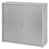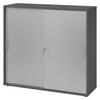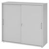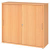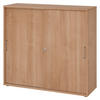 bümö SCHIEBETÜRENSCHRANK - 3 Ordnerhöhen 40/120/110 cm in Weiß/Nussbaumfarben Bügelgriff (Metall)