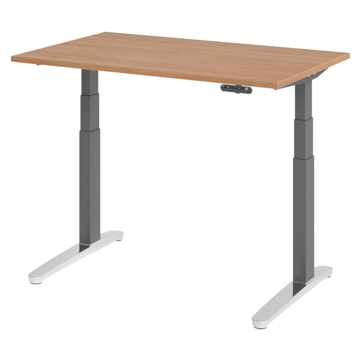 Der elektrische Designer-Schreibtisch XBHM von bümö ist ein ergonomisch, stufenlos höheneinstellbarer Profischreibtisch ohne störende Quertraverse für Ihren Arbeitsplatz. Seine Arbeitshöhe von 65-130 cm wird über einen Elektroantrieb eingestellt und ist somit perfekt für kleine als auch große Menschen geeignet. Ein Schalter mit Display & Memoryfunktion dient zum Einstellen der gewünschten Arbeitshöhe per Höher- und Tiefertaste. Der Bürotisch eignet sich durch seine max. Höhe von 130 cm perfekt auch als Steharbeitsplatz. Eine Höhenjustierung an den Tischkufen garantiert auch auf unebenen Böden kippelfreien, stabilen Stand. Der Büroschreibtisch kommt aufgrund seiner vielfältigen Konfiguration überall perfekt zum Einsatz!