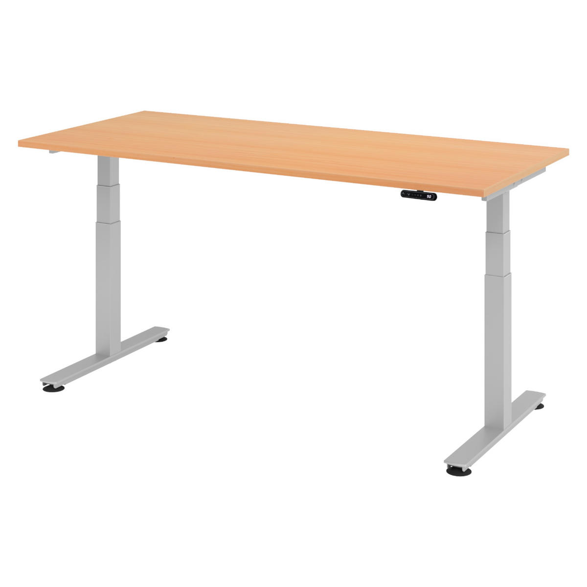Der elektrische Schreibtisch XDSM von bümö ist ein ergonomisch, stufenlos höheneinstellbarer Profischreibtisch ohne störende Quertraverse für Ihren Arbeitsplatz. Seine Arbeitshöhe von 63,5-128,5 cm wird über einen 2-Motor-Elektroantrieb eingestellt und ist somit perfekt für kleine als auch große Menschen geeignet. Ein Schalter dient zum Einstellen der gewünschten Arbeitshöhe per Höher- und Tiefertaste. Der Bürotisch eignet sich durch seine max. Höhe von 128,5 cm perfekt auch als Steharbeitsplatz.