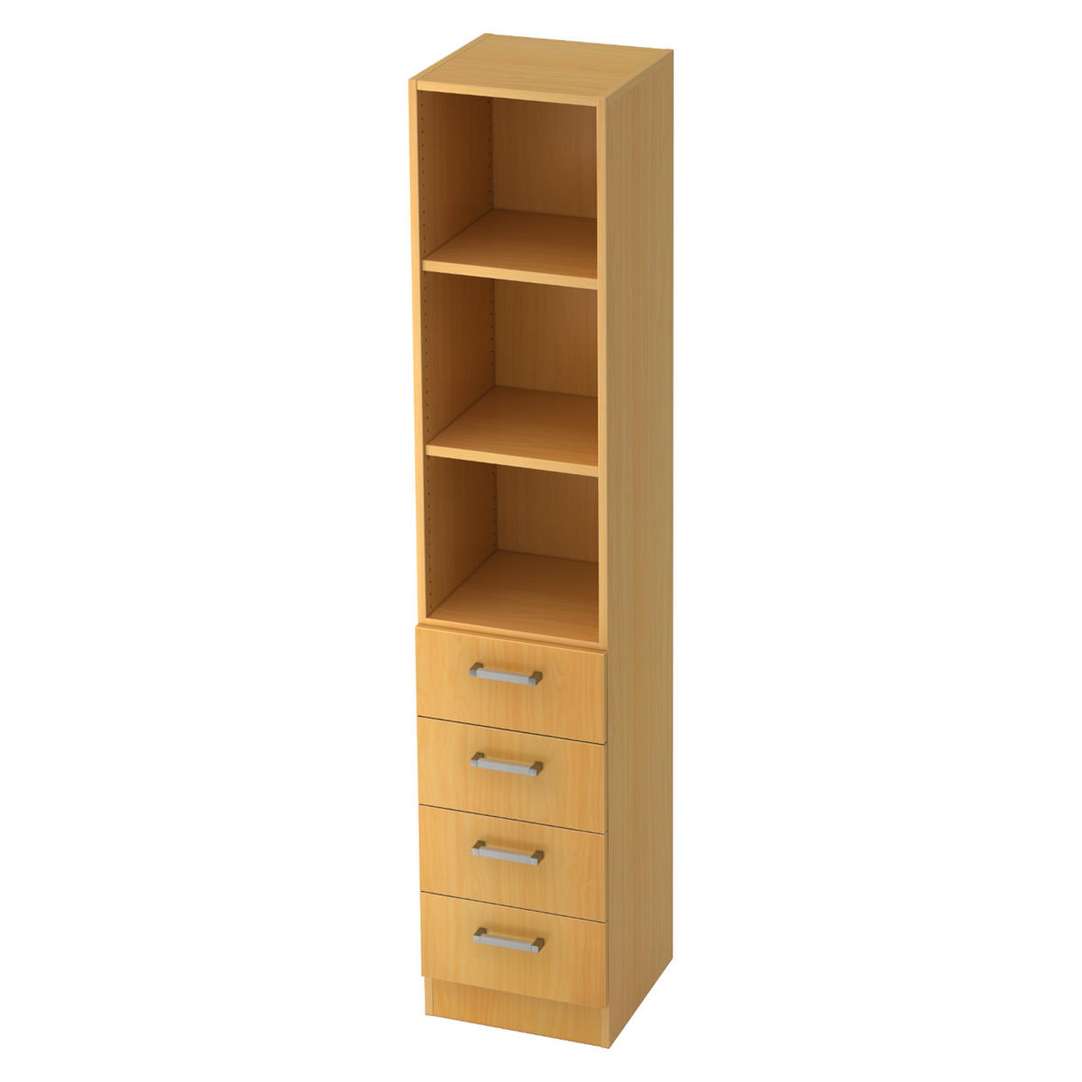 bümö office Schubladenschrank & Regal KombiDie office Schubladen-Regal Kombination von bümö ist der Büroschrank für die professionelle Aufbewahrung Ihrer Aktenordner & Büromaterialien. Besonders stabile & kratzresistente Elemente garantieren eine abnutzungsfreie, intensive oder gewerbliche Nutzung. Die Schubladenschränke können farbgleich mit anderen Schränken aller bümö Büromöbel kombiniert werden. Die Regalstandfüße können über eine Höhenjustierung fein eingestellt werden. Dadurch ist ein sicherer, kippelfreier Stand des Schrankes auch auf unebenen Böden gewährleistet. Besonders starke, 19 mm dicke Plattenelemente machen die bümö office Serie zu einem unvergleichbaren, massiven Möbelstück. Erweitert und kombiniert werden kann der office Schubladenschrank auch mit den bümö office Regalen, Rollladen- Schiebetüren- und Aktenschränken. So lassen sich ganz einfach Schrankwände nach belieben zusammenstellen. Erhältlich in vielen attraktiven Dekoren.