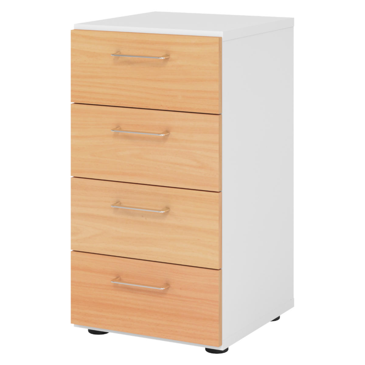 bümö SCHUBLADENSCHRANK - 4 Schübe 42/40/74,8 cm in Weiß/Buchefarben
