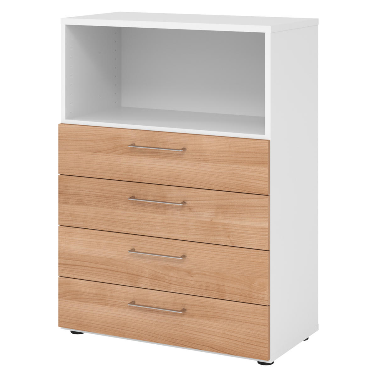 bümö SCHUBLADENSCHRANK - 4 Schübe 42/80/110 cm in Weiß/Nussbaumfarben