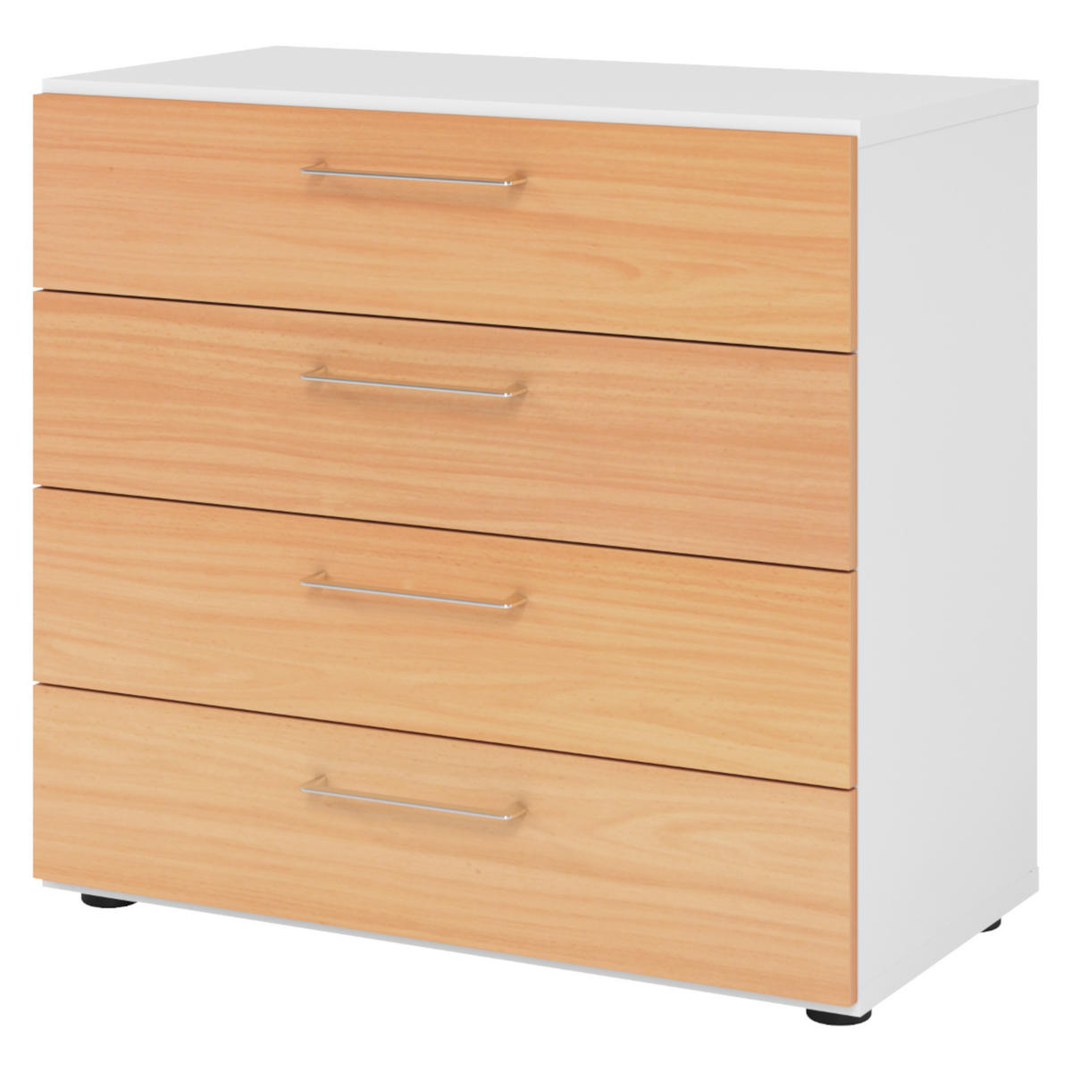 bümö SCHUBLADENSCHRANK - 4 Schübe 42/80/74,8 cm in Weiß/Buchefarben