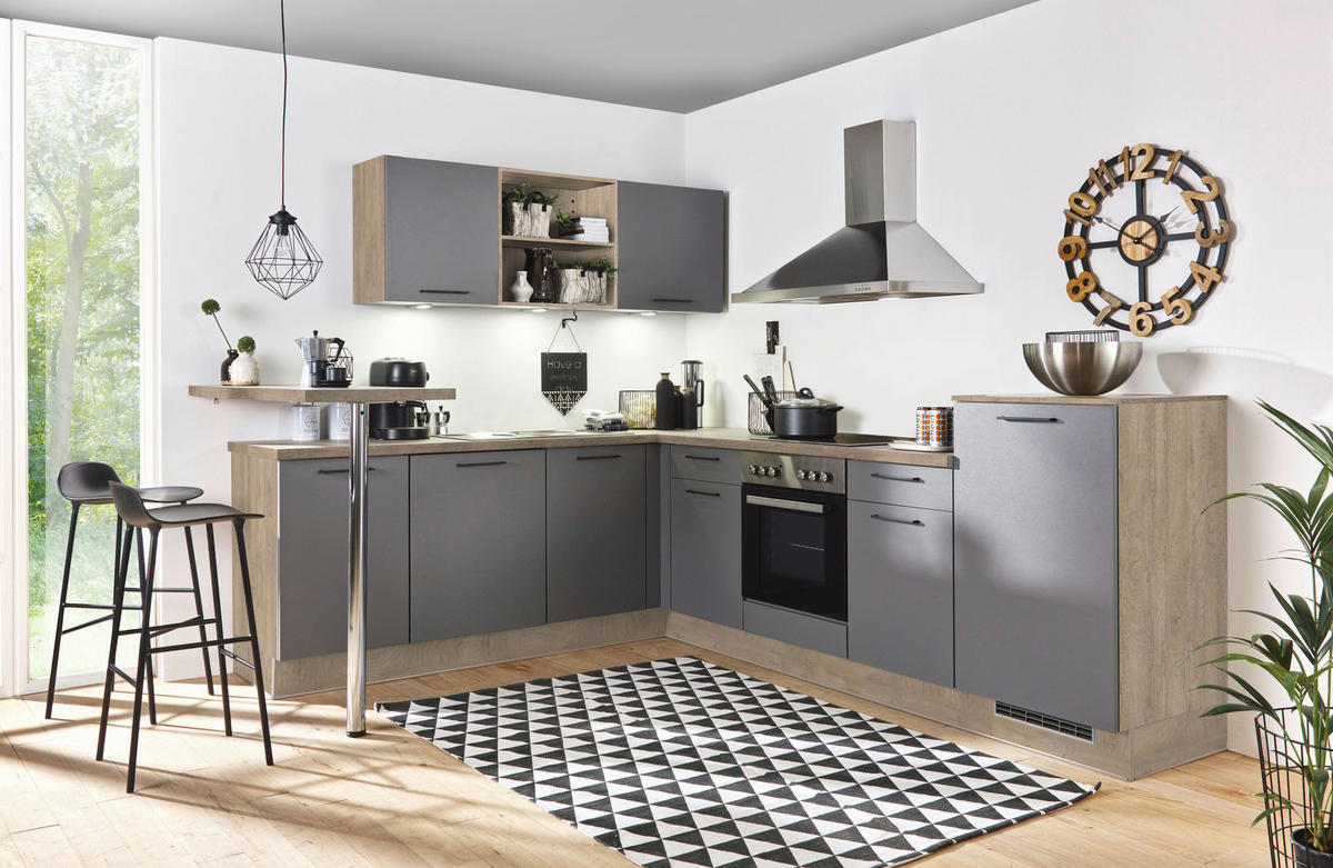 Burger ECKKÜCHE 250/285 cm in Eichefarben, Dunkelgrau