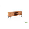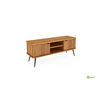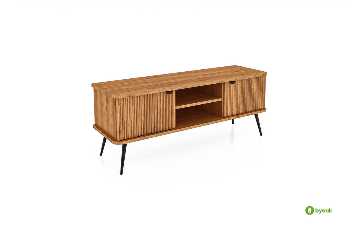 Bei der Auswahl eines Tisches für den Fernseher schlagen wir fast automatisch bestimmte gemeinsame Muster vor. Niedrige Höhe des Möbels und eine lange Platte, damit man viele Zentimeter darauf unterbringen kann. Selbst wenn der Bildschirm an der Wand hängen soll, würden wir uns unwohl fühlen, wenn wir nicht ein bestimmtes Möbelstück darunter hätten, wie z. B. das vorgestellte Modell. Zwei geschlossene Schränke mit Türen und zwei offene Regale für Elektronik, die symmetrisch in der Mitte platziert sind, sind ein Klassiker.