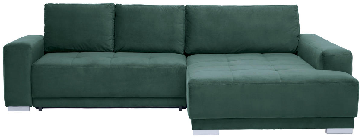 Ab auf Ihr dunkelgrünes Ecksofa mit Flachgewebe-Bezug!