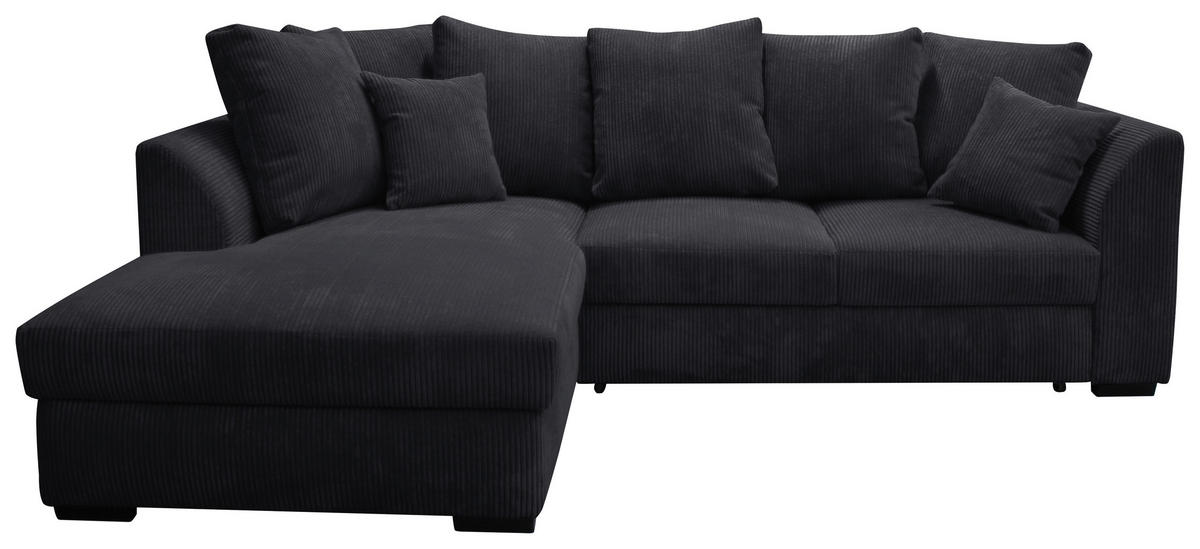 Genießen Sie Ihr Rendezvous mit der wohligen Unbeschwertheit des Seins auf diesem schwarzen Ecksofa mit Cord-Bezug!
