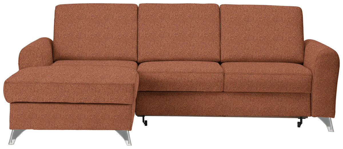 Im Lieferumfang enthalten: Ein It-Piece, das Ihren Erwartungen gerecht wird: Dieses orange und rostrote Ecksofa mit Flachgewebe-Bezug tut einiges fürs individuelle Wohnglück!