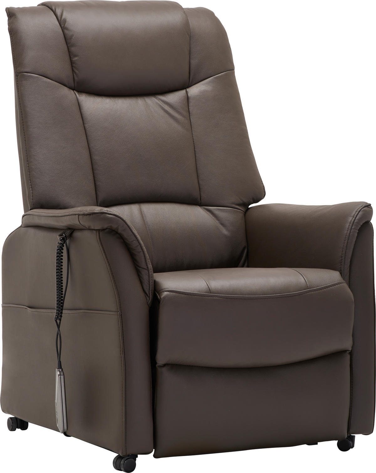 Charakteristisch für diesen Sessel ist das klassische Design. Die Kombination aus echtem Büffelleder und Kunstleder in Braun verleiht dem Möbel eine elegante Note. Ein weiterer Pluspunkt: Dank der 4 Rollen können Sie den Sessel frei im Raum verschieben. Die integrierte Aufstehhilfe mit Motor erleichtert Ihnen das Aufstehen. Genießen Sie gemütliche Stunden!
