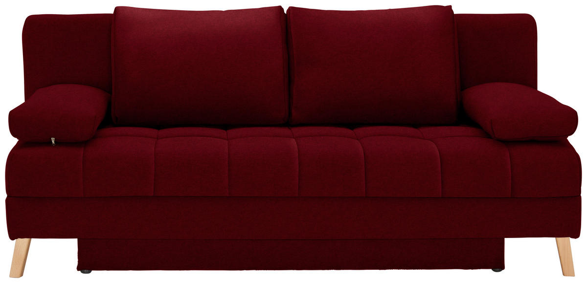Ihr dunkelrotes Schlafsofa mit Webstoff-Bezug verführt dazu, behaglich die verdiente Me-Time zu genießen!