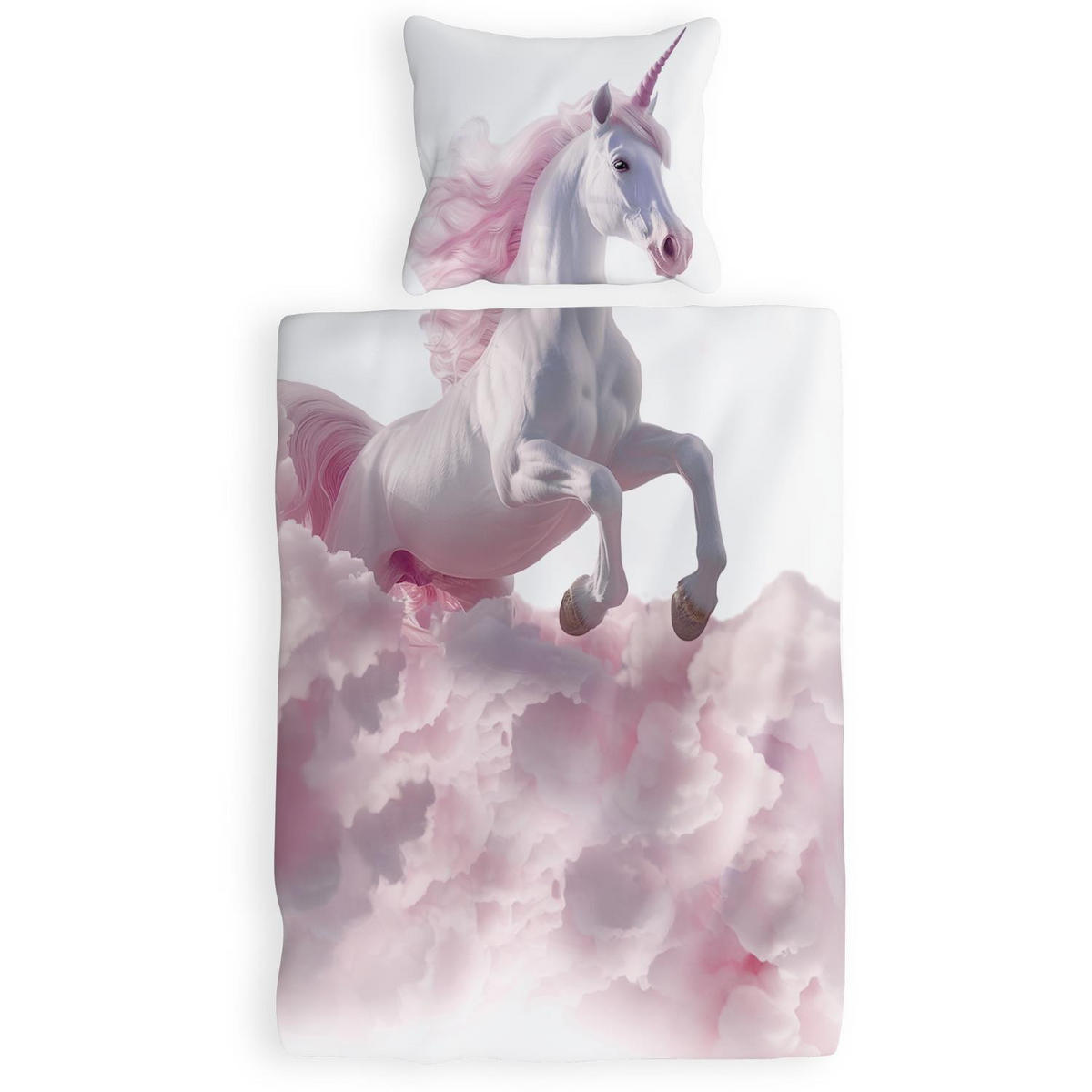 KINDERBETTWÄSCHE 135x200 Einhorn aus 100% Baumwolle - Dein Gesicht vervollständigt das Design der Kinder Bettwäsche - Weiß, Textil (135/200cm) - Carpe SonnoCarpe Sonno