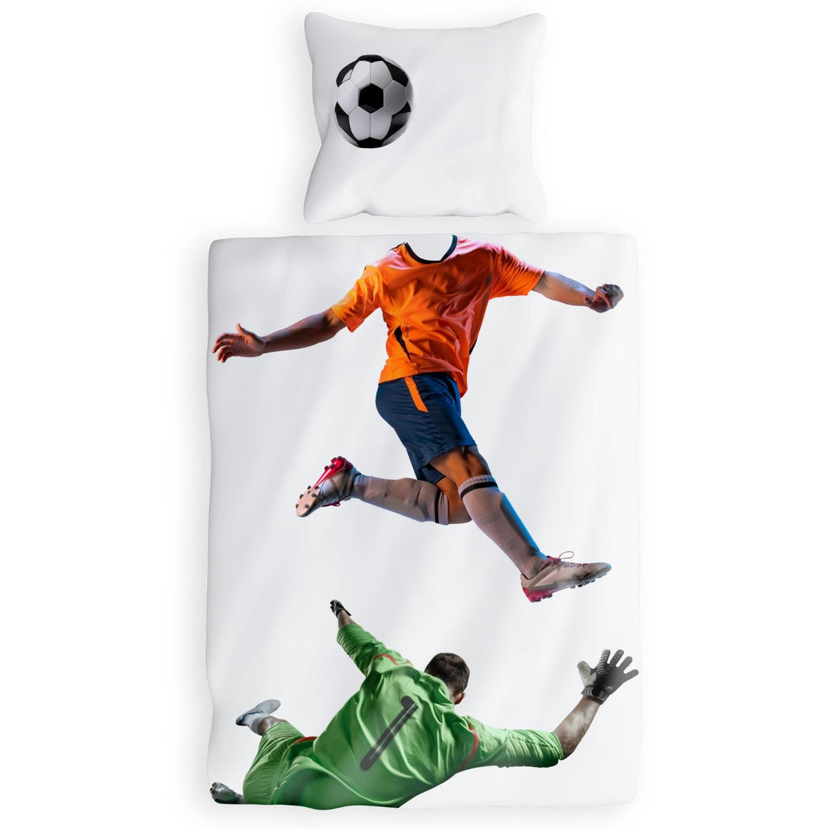 Carpe Sonno KINDERBETTWÄSCHE 135x200 Fussball aus 100% Baumwolle - Dein Gesicht vervollständigt das Design der Kinder Bettwäsche