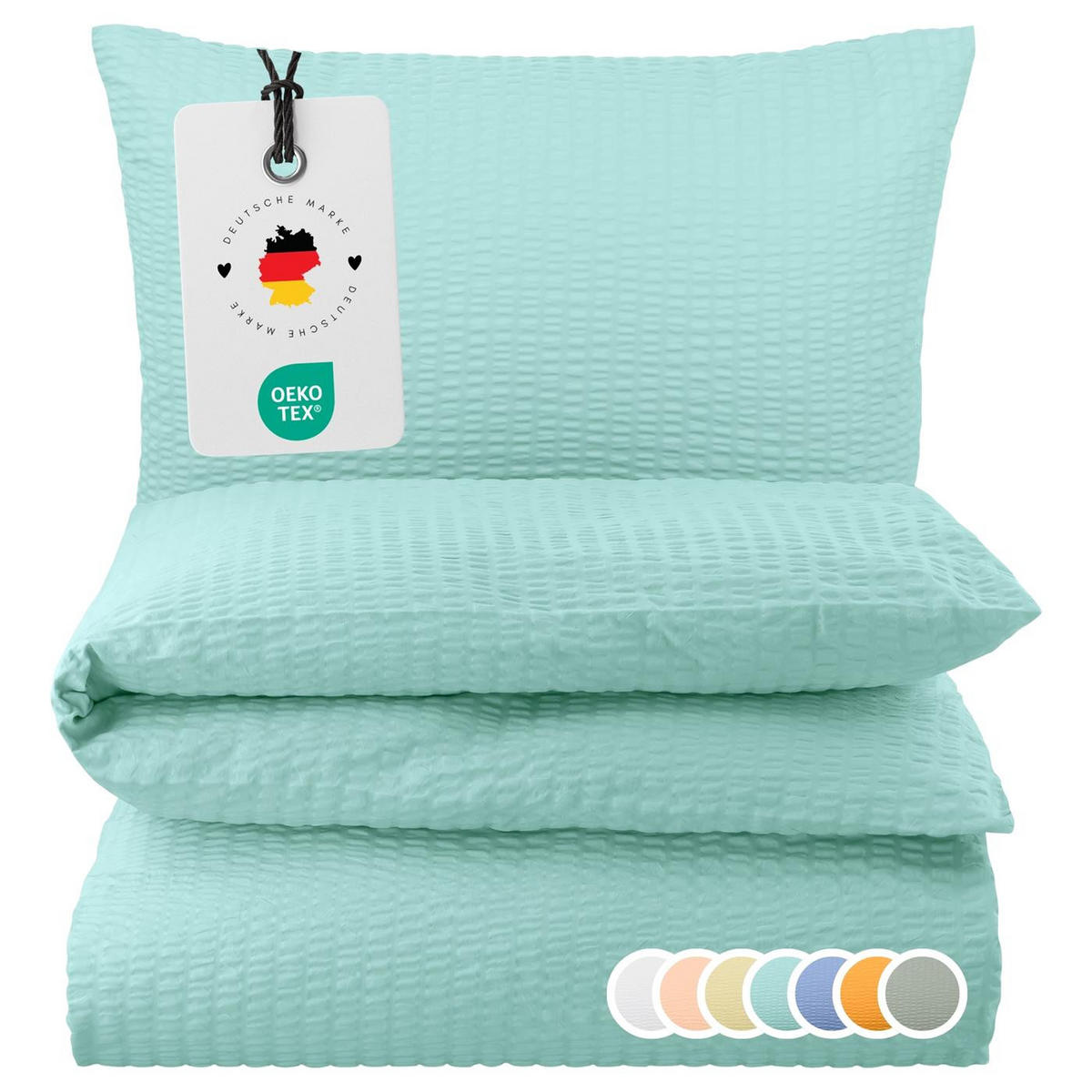 SEERSUCKER-BETTWÄSCHE 135x200 Uni Sommer Bettbezug Bügelfrei aus 100% Baumwolle, Bettbezüge einfarbig Mint Grün - Mintgrün, Textil (135/200cm) - Carpe SonnoCarpe Sonno